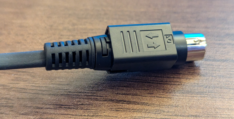 The connector on the Ohaus balance is a 6 position mini DIN connector. Several connectors were fitted, however, the one that worked best and was ultimately used was a Kycon KMDLAX-6P-KPPSR. This was about $5.80 from DigiKey time of purchase, however, cheaper versions are available that likely fit just as well.